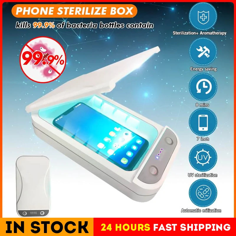 Ensure your phone, jewelry, and other small items are free from harmful germs with our UV light sterilizer box.